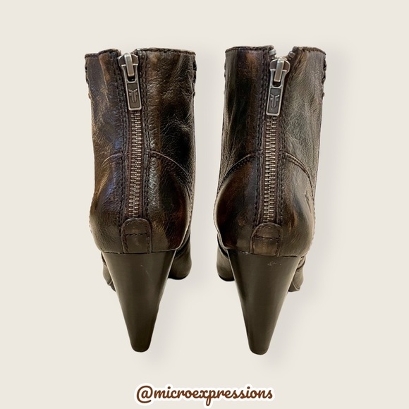 $349 Frye Regina Distressed Brown Real Leather Heeled Southern Ankle Booties