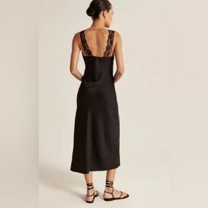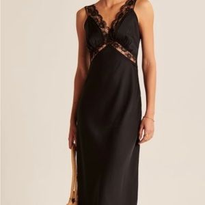 Abercrombie and Fitch black Satin Slip lace trim lace strap Dress size large new
