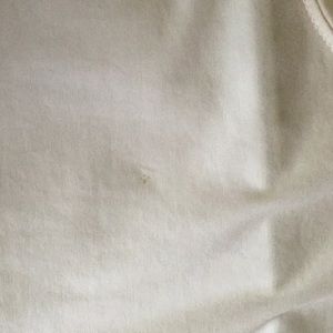 Small stain I see in it hardly visible but is white shirt don’t think will have hard time to take it off