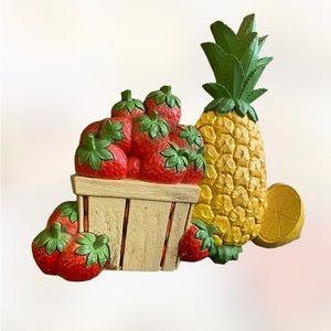 Vintage MCM homco pineapple strawberry fruit basket 3-D wall hanger decor