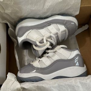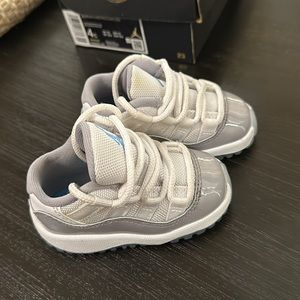 Jordan 11 low cement grey size 4c unisex shoe. Has some light stains