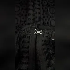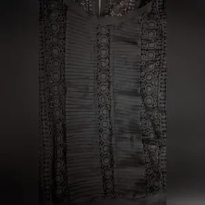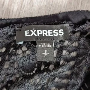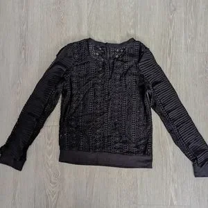 Women's Express Black Crochet Pleated Ruffle Blouse Long Sleeve Size Small EUC!