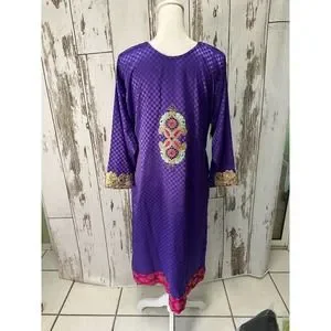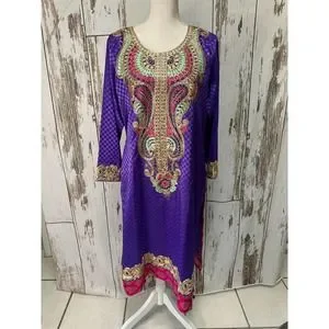 Boho Indian Style Dress Purple/Pink/Teal/Gold Check Measurements