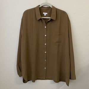 J.Jill Blouse Top Womens Size XL Button Front Brown FLAWED