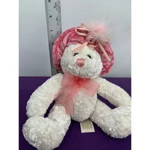 Dan Dee Victorian Sitting 8 Inch White Bear Pink Velvet Hat Rose Feather Bow