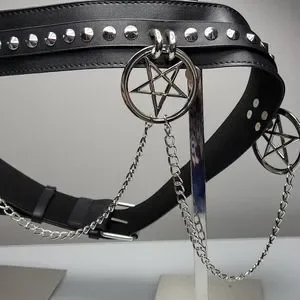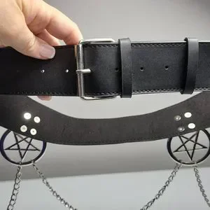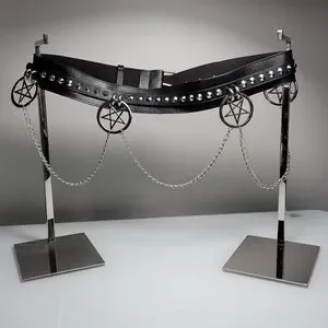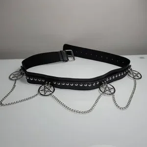 Killstar Curses Chain Belt Black Vegan Leather Silver Pentagram Chains Rock Stud