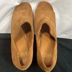 Anthropologie Franco Sarto Ellison Leather Suede Mules Shooties Block Heels