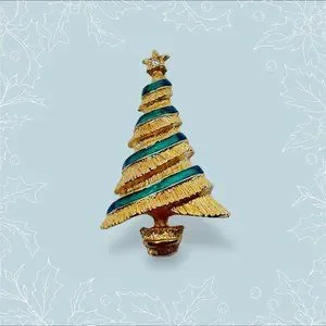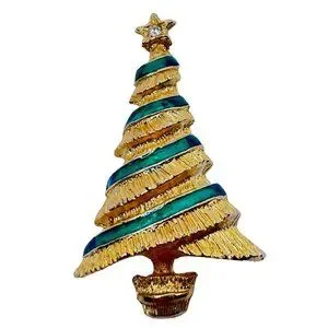 Christmas Tree Vintage Brooch PinGold-colored with green stripes