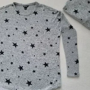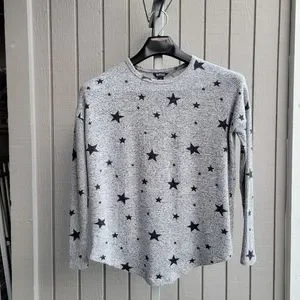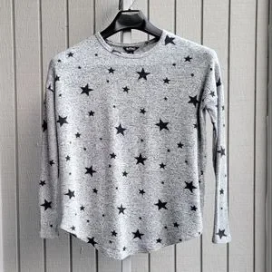 Fitted Sleeves Loose Fit Stretchy Viscose Stars Sweatshirt EUC Women's S grey