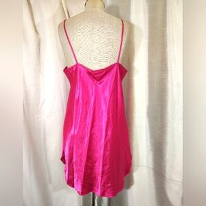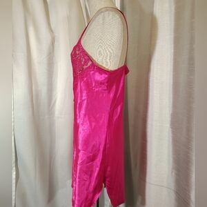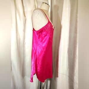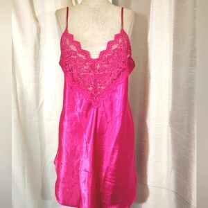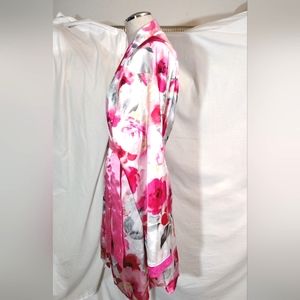 2Pc:Rose Satin Robe+Slip: Floral Pinks & White, Satin+ Lace, Tie, Straps, M