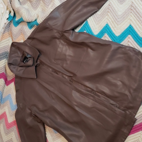 Reitman's Faux Leather Shacket brown iron size large jacket