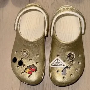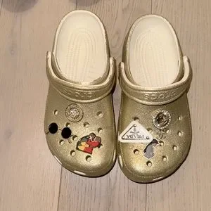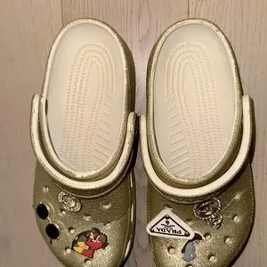 😍WOMEN GLITTER CROCS BUNDLE WITH CHARMS. Size 6, used gently in great condition