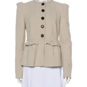 BURBERRY London Beige Tan Nude Blazer Jacket With Ruffle Peplum 40 US 6