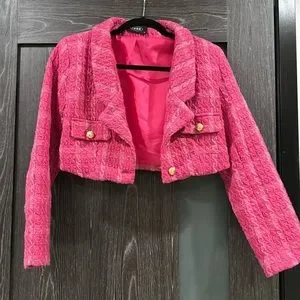 Trendy hot pink cropped coat/blazer.