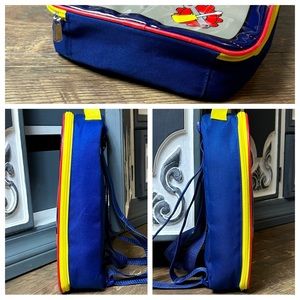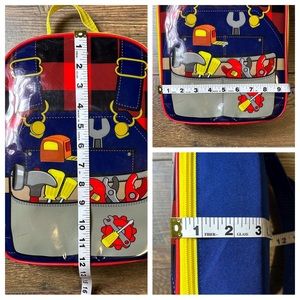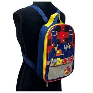 This originally came with plastic play tools which it obvious doesn't have. Backpack is still fun for any kid & a piece of Toys R Us which no longer exists