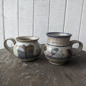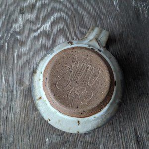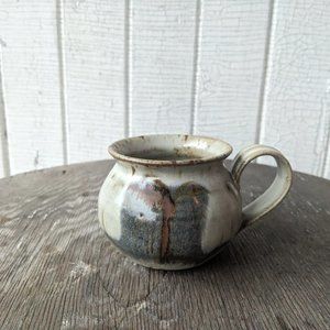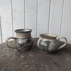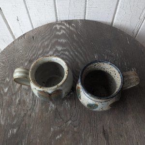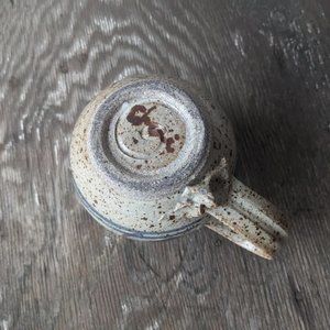 Smaller mug: greyish with steely grey blue and mustard glaze