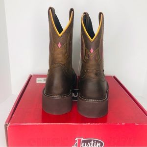 Justin Gemma Gypsy 8” Dark Brown Buffalo Round Toe Boots GY9526 Women’s 9 B New