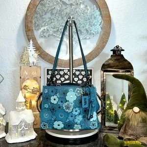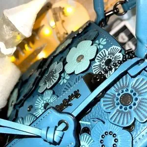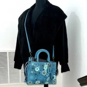 COACH#58840 BLUE TEA ROSE APPLIQUE ROGUE SATCHEL