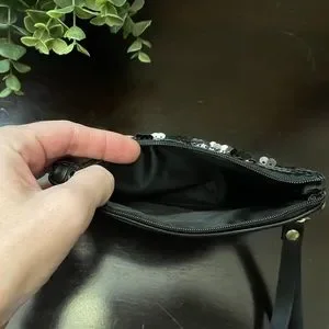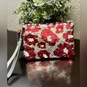 NWT! Stadium and fashion approved reversible sequined wristlet. Features vegan leather back, zipper closure and removeable wristlet strap.