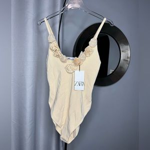 NWT Zara Woman Floral knit Bodysuit Bloggers Fav Size M Medium