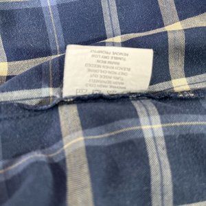 Wrangler Mens Button Down Shirt LG Blue Plaid Short Sleeve Rugged Wear Outdoors