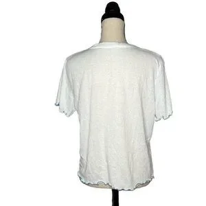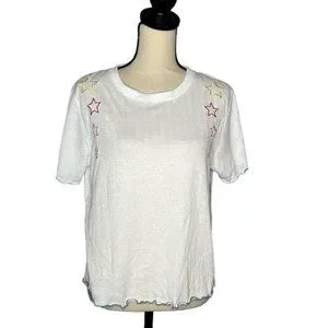 Emerson Road White Star Print Short Sleeve Shirt Women's Size Large L