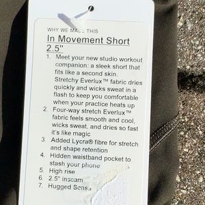 New with Tags LULULEMON In Movement Shorts, Size 12