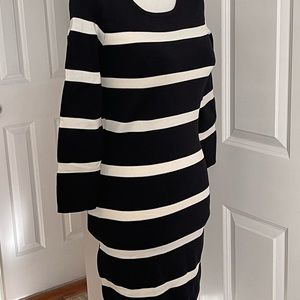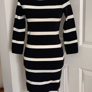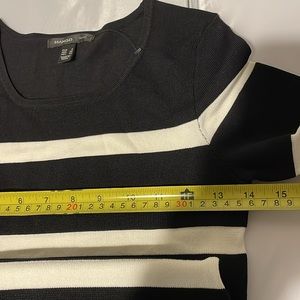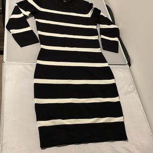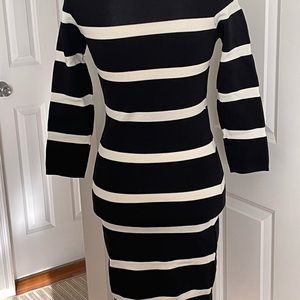 Mango Suit Striped Women White And Black knit Body Dress 3/4 Sleeves Size XS