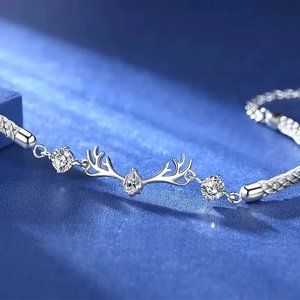 Stunning Ladies Solid .925 Sterling Silver Deer Cubic Zirconia Bracelet