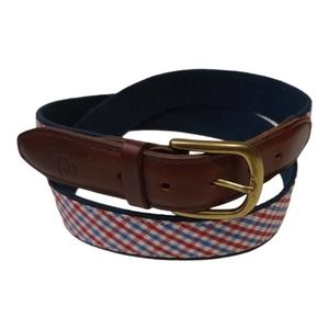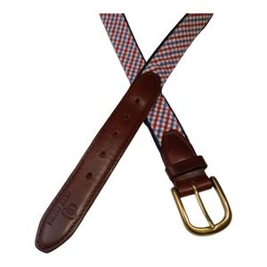 Olly Oxen Red Blue Gingham Leather Belt Size 40 / 100