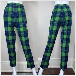 Vintage 1960s Green and Blue Plaid Wool Pants, Pendleton Size XS, 24"x27.75"