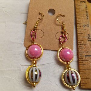Steel Handmade Hand Crafted Pink & Rainbow Beaded Dangle Earrings Jewelry #52