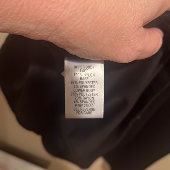 Size 16 and too cute!! This dress has a lace like top and a cotton feel bottom…see pics for materials info and all details!
