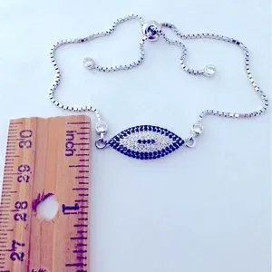 🧿925 Silver evileye bracelet bolo cubic zirconia stones oval shape