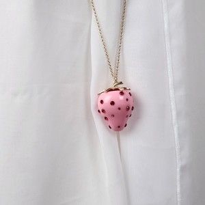 NWT Betsey Johnson Pink Strawberry-Red Rhinestone Long Necklace Gold Tone