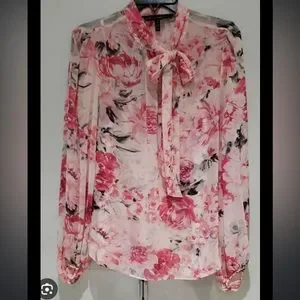 NWT WHBM Long Sleeve Floral Tie-Neck Blouse Size 10