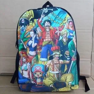 One Piece Kids Anime Backpack / Bookbag with Animated TV ShowCartoon Character Graphic. Has 2 mesh compartments on the sides. Back to school travel bag with adjustable straps.