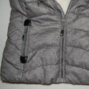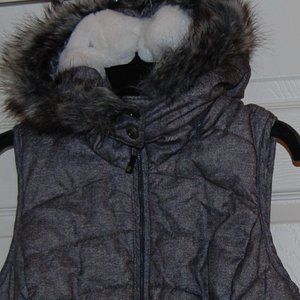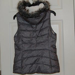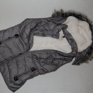 Green Tea Puffer Vest, Faux Fur Lined, Hooded, Zip Pockets, Gray, Size S