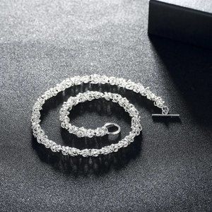 18 Inch Toggle Byzantine Necklace Stamped .925 Solid Sterling Silver 7mm Wide