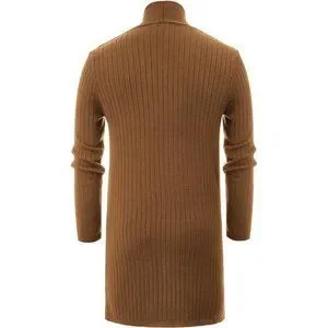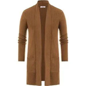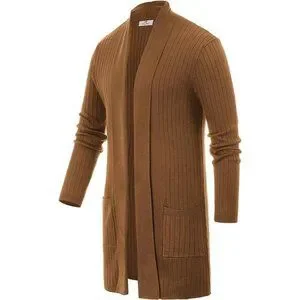 Men's Shawl Collar Open Front Long Cardigan Ribbed Knit Sweater with Pockets