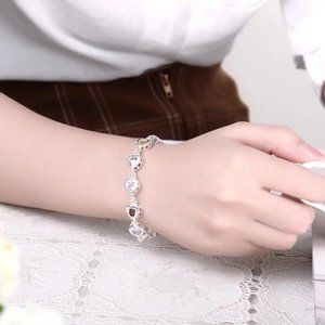 Beautiful Multi - Colored Heart Style Ladies Bracelet Stamped .925 Solid Sterling Silver
