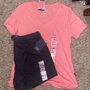 Coral colored shirt and charcoal linen shorts. Brand new with tags. Both from The Gap.