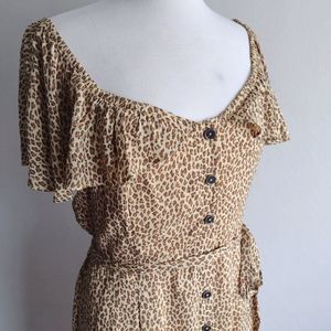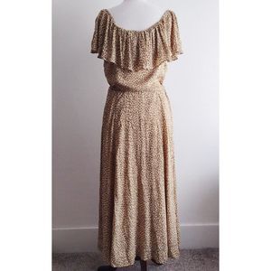 Soft button front midi dress with caplet like sleeves (elastic to wear on or off shoulders