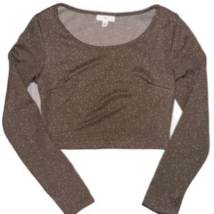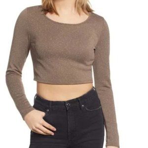 NWT Nordstrom Bp. Knit Crop Top Green Olive Night Speckled Medium S