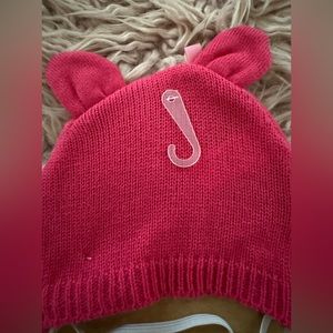 NWT Pup Crew adorable pink dog hat with ears. Side M/L. Has an elastic band to keep on dogs head / around neck area. Has a cute pink bow on one of the ears and white and black for the eyes on the hat/design.