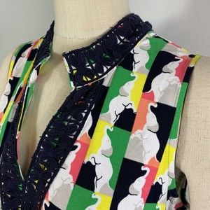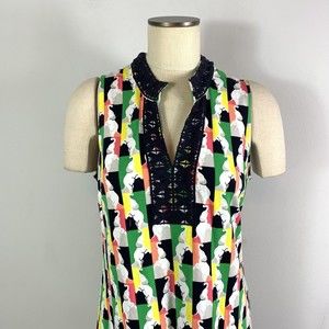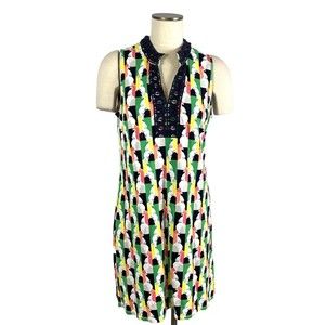 Crown and Ivy size medium Shift Dress Elephant green coral blue V-neck