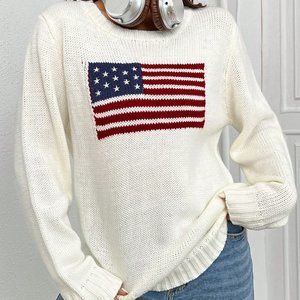 White Casual Womens Flag Pattern Sweater