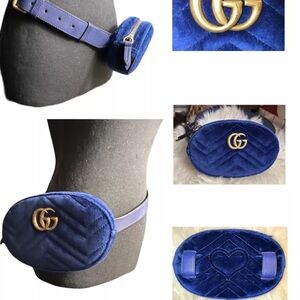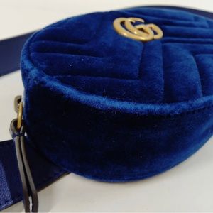 Gucci Waist Pouch Velvet Blue Belt Gg Marmont women's bag
