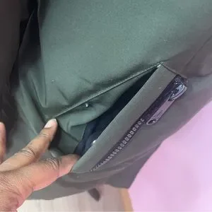 Really a beautiful winter jacket by Sam Edelman. Olive green with detachable fur faux lined hood. Faux fur is detachable but hood is not. Black zippers and buttons all in working order. Worn like 3-5x so in really good condition except for two stains one on sleeve and one on back which are pictured. Size Medium. This is my daughter’s jacket which she has outgrown and we are selling for college fund. 📚 Thanks for looking 💖