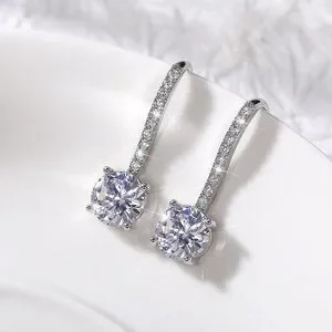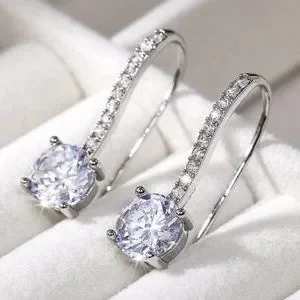 🎀 White Crystal CZ Dangle Earrings for Women Imitate Zircon Drop, HA4516